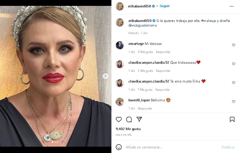 La destacada actriz de telenovelas regresó a las redes sociales y esta vez para compartir una coqueta fotografía de su aparienciaCiudad de México.- Érika Buenfil, famosa actriz de telenovelas, volvió a demostrar su gran sentido de la moda, luego de publicar una coqueta fotografía en su redes sociales. Una publicación que enalteció su distinguida belleza, pues se dejó ver de lo más espectacular frente a las cámaras del espectáculo.