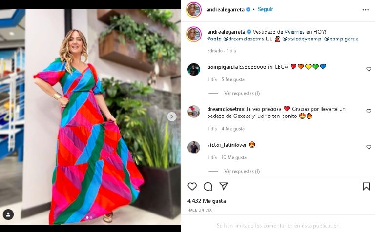 La distinguida publicación de Andrea Legarreta de inmediato se hizo popular en todo Internet, por lo que sus fans no han dejado de elogiarla y escribirle mensajes de cariño por su gran sentido de la moda, entre ellos destacan: "Tan Linda", "Hermosa", "Muy Guapa", "Qué preciosa", entre otros.