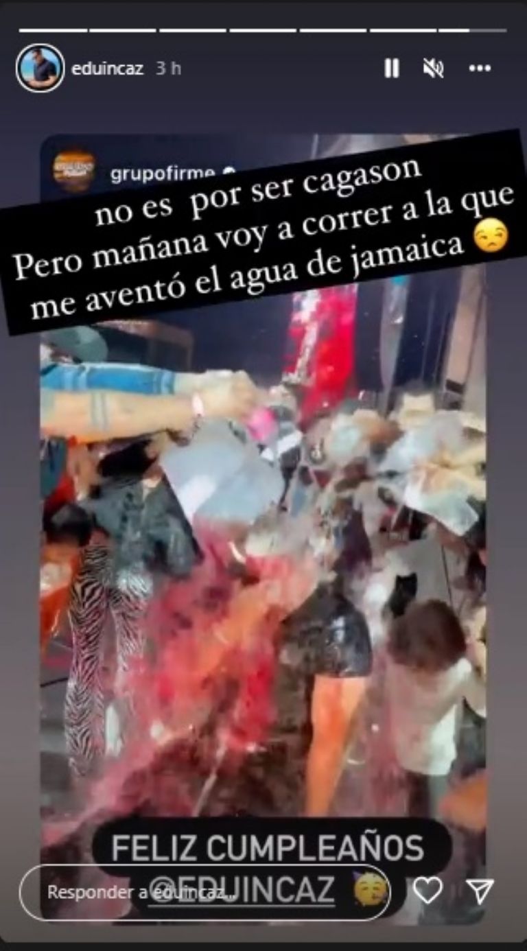 El vocalista de Grupo Firme celebró a lo grande su cumpleaños y terminó bañado en agua de jamaicaCiudad de México.- El vocalista de Grupo Firme Eduin Caz, estuvo de manteles largos celebrando su cumpleaños 28 en compañía de su familia, lo más importante para él según ha expresado y a través de sus redes sociales compartió algunos momentos de su celebración y por supuesto que la música y el brindis no podían faltar.