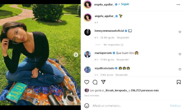 Después de que saliera a la luz su relación con el compositor, la cantante publicó una serie de fotografías en las que mostró su destacado look de día, pues se trató de una increíble blusa negra y un pantalón de mezclilla que dejaron encantados a sus fieles admiradores de Internet. Es por ello que acumuló más de 200 mil 'Me Gusta', así como un sinfín de mensajes que expresan cariño y piropos por su indiscutible belleza.
