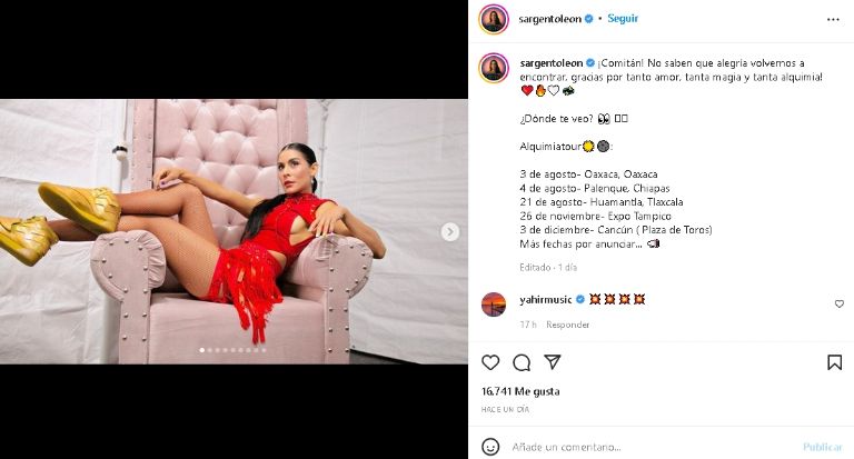 El increíble post de la cantante mexicana no tardó es ser popular por toda la red al robar suspiros entre sus miles de admiradores, quienes no dudaron en enviarle un sinfín de comentarios llenos e carillo y piropos. Es por ello que dicha publicación de Internet ya cuenta con más de 16 mil 'Me Gusta', así como un sinfín de comentarios.