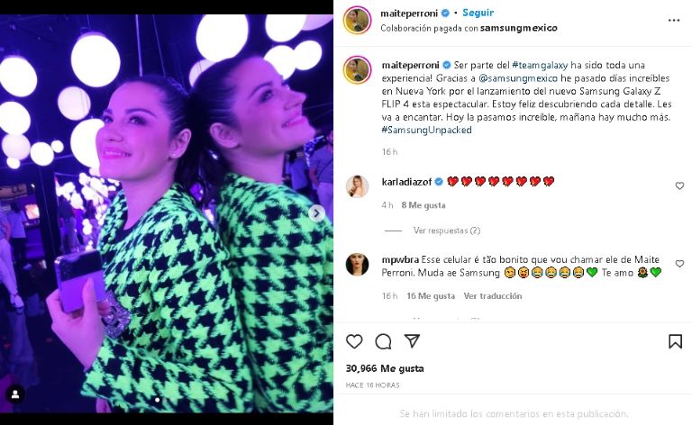 Fue en su cuenta oficial de Instagram que la intérprete de Oscuro Deseo publicó una imagen en luce un distinguida blusa verde neón con negro que si bien, la hicieron brillar en Internet por lo maravillosa que lució en redes sociales. Un look que presumió para promover un celular de una reconocida marca electrónica, pues es una de sus grandes colaboraciones dentro del mundo del maquillaje.