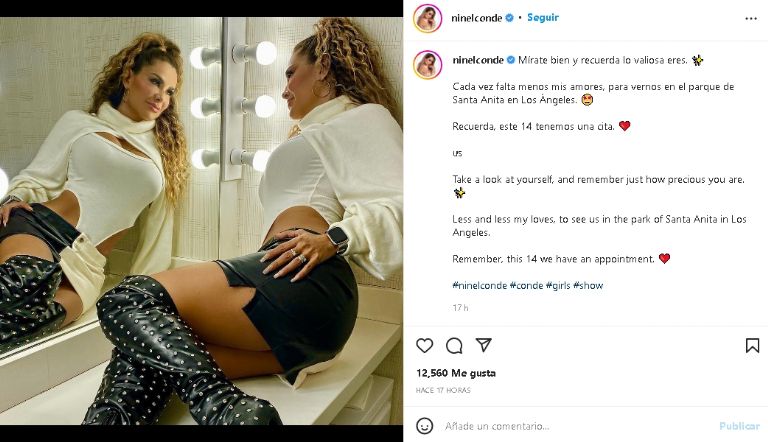 Fue así como la cantante de pop de 45 años y estrella de Televisa mostró unas imágenes de su envidiable físico, donde posó con una coqueta blusa blanca y una falda negra que combinó con una un peinado en risos y accesorios del mismo color. Un outfit que utilizó para una sesión fotográfica, donde agregó el siguiente mensaje: "Mírate bien y recuerda lo valiosa eres. Cada vez falta menos mis amores, para vernos en el parque de Santa Anita en Los Ángeles. Recuerda, este 14 tenemos una cita.