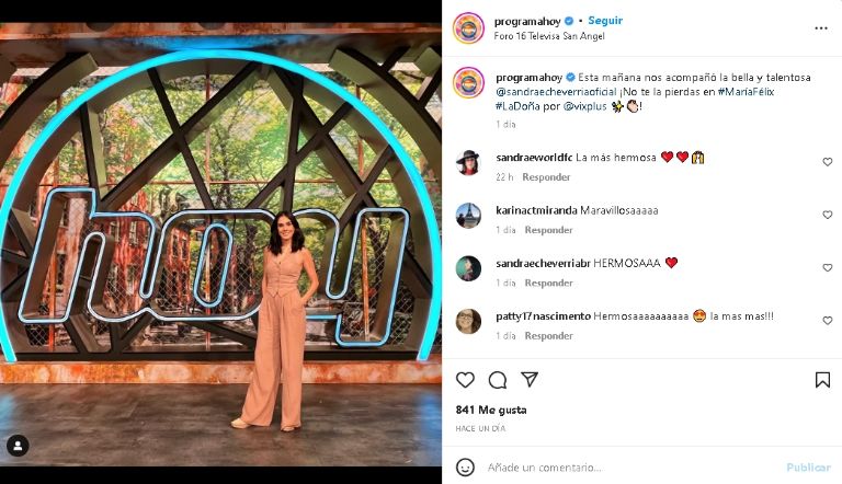 A través de una instantánea subida en los perfiles de Televisa, la estrella de la pantalla chica posó con un destacado jumpsuit café que, en gran medida, enalteció su belleza natural frente a los reflectores mexicanos, por lo que sus fans no han dejado de elogiarla y escribirle mensajes de cariño por su gran sentido de la moda, entre ellos destacan: "Guapa", "Hermosa", "Linda", Qué preciosa", entre otros.