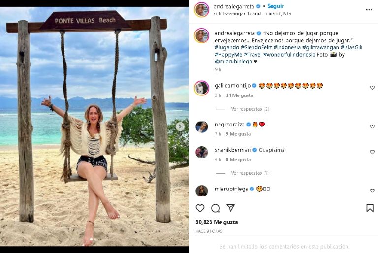 Este se trato en un encantador short negro y blusa blanca que resaltaron el envidiable cuerpo que tanto la ha caracterizado; una combinación que enalteció su gran belleza mientras posa en un columpio que da vista al mar, lugar al que viajó de vacaciones tras dejar los foros de San Ángel la semana pasada.