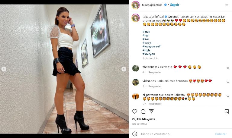 Tabata Jalil posa con distinguido outfit blanco con negro y enciende las redes