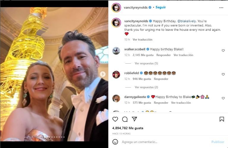 Fue lo que escribió el actor, de 45 años, en Instagram el jueves, junto a un carrusel de fotos que conmemoran el cumpleaños número 35 de Lively. Además de una serie de selfies de la pareja, la estrella de Deadpool publicó fotos en solitario de la actriz de Gossip Girl en la Met Gala este año y descansando en un autobús de fiesta.