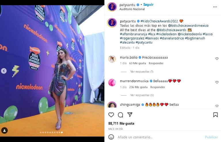 Desde sus perfiles de las redes sociales, la intérprete pop causó sensación entre sus 2. 1 millones de seguidores, luego de posar con un coqueto vestido plateado que resaltó su envidiable figura de infarto, la cual es envidiada en el medio artístico y que por supuesto, presume cuantas veces puede en la arriba de la tarima musical. Un look que presumió durante la alfombra roja de los premios Kid Choice Awards de Nickelodeon, pues es una de sus grandes participaciones dentro del mundo del espectáculo.