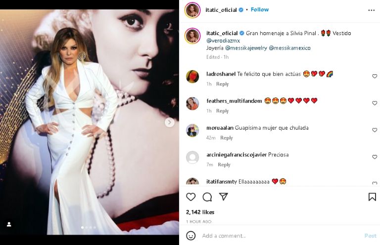 A través de una instantánea subida en los perfiles de Televisa, la estrella de la pantalla chica posó con un destacado conjunto blanco que, en gran medida, enalteció su belleza natural frente a los reflectores mexicanos, por lo que sus fans no han dejado de elogiarla y escribirle mensajes de cariño por su gran sentido de la moda, entre ellos destacan: "Guapa", "Hermosa", "Linda", Qué preciosa", entre otros.