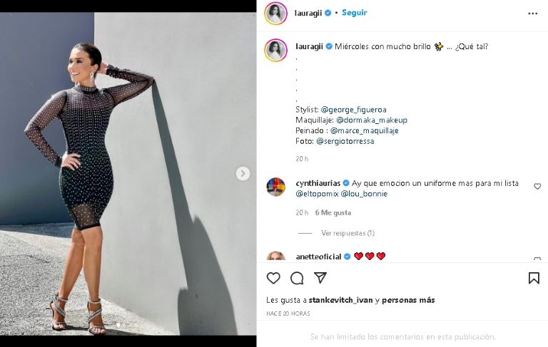 FOTO: Laura G luce elegante vestido negro y deleita a sus fans de TV Azteca