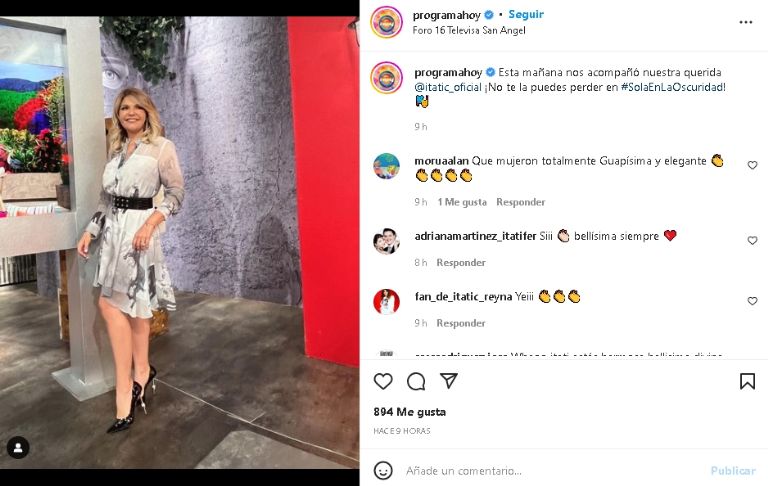 A través de una instantánea subida en los perfiles de Televisa, la estrella de la pantalla chica posó con un ceñido vestido blanco que, en gran medida, enalteció su belleza natural frente a los reflectores mexicanos, por lo que sus fans no han dejado de elogiarla y escribirle mensajes de cariño por su gran sentido de la moda, entre ellos destacan: "Guapa", "Hermosa", "Linda", Qué preciosa", entre otros.
