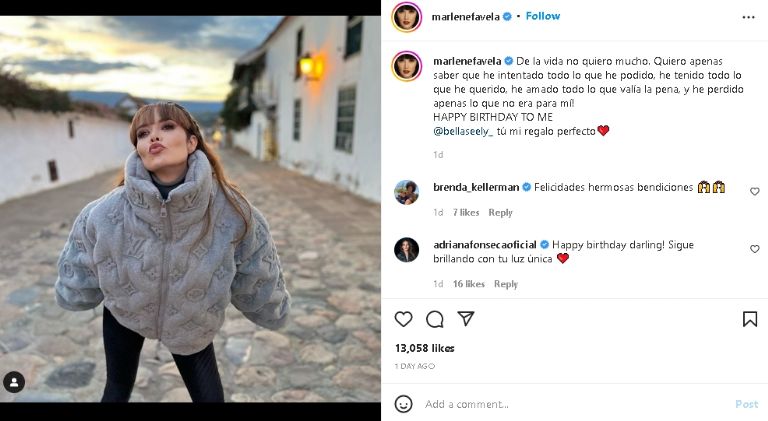 Por el momento, Marlene Favela disfruta de una exitosa carrera dentro de la televisión mexicana, donde ha desempeñado un destacado trabajo como actriz en proyectos como Gata Salvaje, La Desalmada y Los Herederos del Monte.Un don que sigue presumiendo día con día desde la famosa empresa de Emilio Azcárraga.