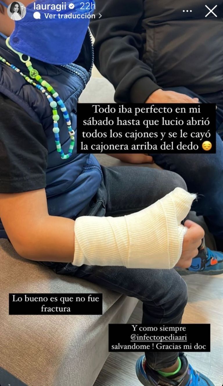 Todo iba perfecto en mí sábado hasta que (el menor) abrió todos los cajones y se le cayó la cajonera arriba del dedo. Lo bueno es que no fue fractura y como siempre @infectopediaari salvándome. Gracias mi doctor", escribió en Instagram.