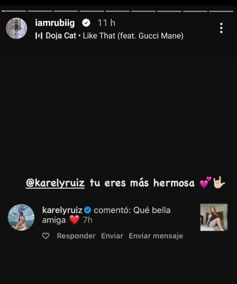 Al parecer el sentimiento de admiración es mutuo y no sería extraño que sorprendan con alguna colaboración, la cual resultaría un boom en redes sociales, debido a que ambas son muy queridas, pues hasta el momento Rubí cuenta con más de 239 mil seguidores en Instagram, mientras que Karely Ruiz acaba de llegar a los 7 millones de seguidores.