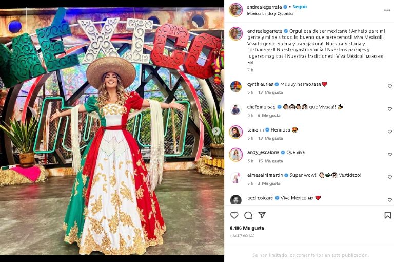 En sude Instagram, la estrella de la televisión no solo demostró su gran carisma en frente a los reflectores, sino que además presumió su excelente gusto por las prendas y cómo combinarlas. En la imagen aparece con un elegante vestido con los colores patrios que , en gran medida, enaltecieron su figura natural en los foros de San Ángel y la hizo brillar entre los reflectores del espectáculo.