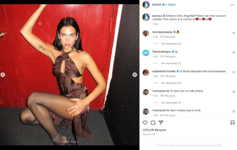 La destacada cantante de pop volvió a enamorar a sus fans de Instagram, luego de posar con un ceñido vestido caféEstados Unidos.- De nueva cuenta la querida estrella de pop, Dua Lipa, logró enamorar a sus fieles seguidores de Internet, luego de posar con un coqueto outfit de noche que le queda a la perfección. Un atuendo que no dudo en compartir vía Instagram con unas impactantes fotografías de su distinguida apariencia física que dejaron en shock a todos sus fieles seguidores de Internet.