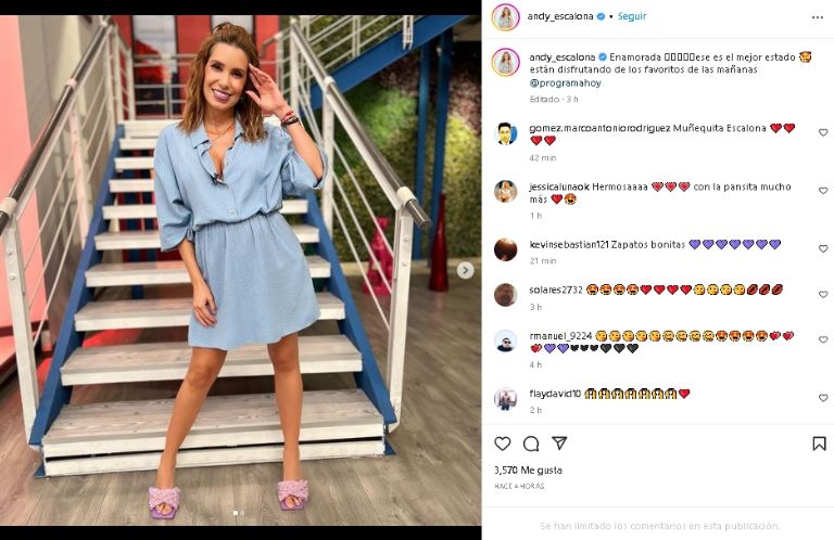 La famosa conductora regresó a Televisa y lució un encantador vestido azul desde su cuenta de Instagram; este es su lookCiudad de México.- Andrea Escalona se ha caracterizado por tener su buen sentido de la moda, mismo que presumió en sus redes sociales al publicar una coqueta fotografía de su gran apariencia. Una publicación que, si bien, sigue siendo tendencia entre su público de Televisa por lo maravillosa que lució frente a las cámaras del espectáculo.