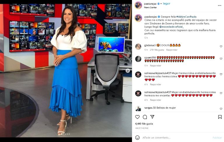 La aclamada periodista y presentadora de televisión enamoró a sus fieles seguidores de Internet, luego de posar con un distinguido outfit azul desde TelevisaCiudad de México.- La distinguida periodista Paola Rojas logró conmover a sus miles de fans de Internet, luego de publicar una coqueta fotografía que deslumbró los reflectores del espectáculo. Una publicación que, si bien, sigue siendo tendencia en las redes y que sigue siendo tendencia en la red.