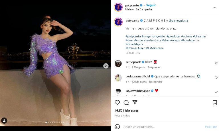 La destacada cantante de pop regresó a las redes sociales y esta vez con un encantador vestido moradoCiudad de México.- Una vez más la destacada cantante de pop, Paty Cantú, presumió su gran sentido de la moda, luego de posar con un coqueto outfit deportivo en sus redes sociales. Un atuendo que no dudo en compartir vía Instagram con unas impactantes fotografías de su distinguida apariencia física que dejaron en shock a todos sus seguidores de Internet.