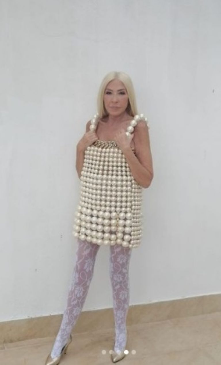 En otra de las imágenes, la peruana porta un vestido hecho de enormes perlas y una cadena, el cual resaltó con unas medias de encaje blanco y unos stilettos en color dorado para darle un toque elegante. Sin duda, Laura Bozzo es una amante de la moda y de divertirse, pues no duda en hacer lo que desea por temor a cuestionamientos.