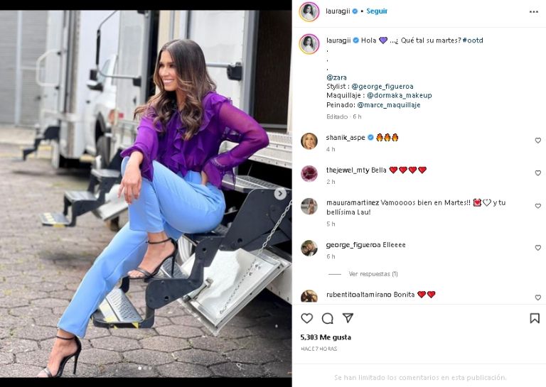 FOTO: Laura G posa con coqueto look morado y deleita a todo TV Azteca