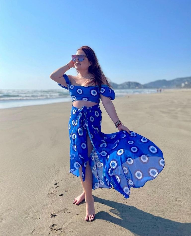 En esta ocasión, Mariana optó por un traje de baño de dos piezas, el cual es perfecto para quienes no gustan mostrar demás y prefieren la comodidad, pues el top es largo al igual que las bragas de tiro alto, mismas que además de dar un efecto de piernas alargadas ayuda a disimular la zona del abdomen, por lo que todas pueden usarlo sin temor a no verse igual de fabulosas que la actriz.