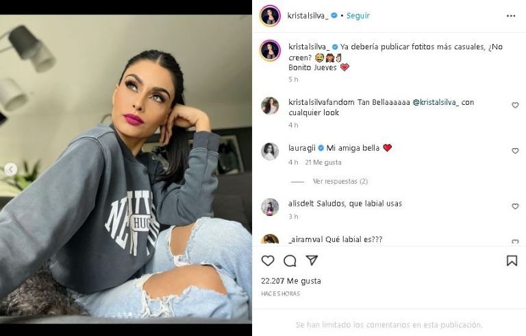 La aclamada estrella de TV Azteca demostró su gran sentido de la moda, luego de posar con un encantador look grisCiudad de México.- La aclamada estrella mexicana Kristal Silva hizo suspirar a todos sus fans de TV Azteca, luego de posar con un encantador look de día desde que dejó el programa 'Venga la Alegría'. Una combinación que no dudo en presumir desde su cuenta oficial de Instagram durante laa tarde de ayer 16 de marzo.