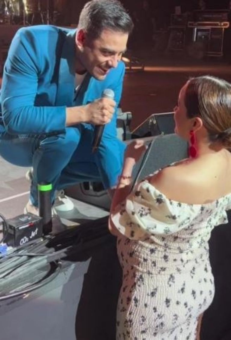 Ante dicho momento, la estrella de Televisa aprovechó el momento y se acercó a la primera fila, donde se encontraba su amada esposa, mientras colocaba su mano en el vientre de Rodríguez, así como con mucho sentimiento, ambos entonaron la romántica lírica. Un momento que causó todo un impacto entre sus fieles seguidores, en especial por su gran cercanía.