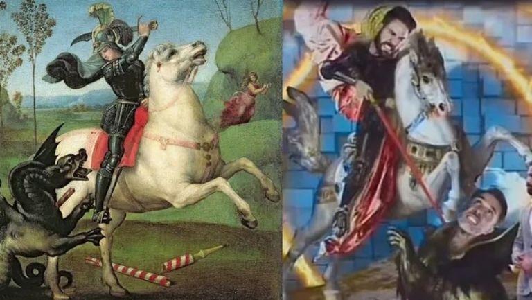 Durante la emisión del programa, se mostró en pantalla un mural que hacía referencia a una alegoría histórica, donde un soldado de Capadocia, llamado Jorge, se convirtió en santo por salvar a un pueblo de un dragón. Sin embargo, la imagen fue editada para incluir los rostros de Jorge Losa y Sergio Mayer, representando a Losa como el santo y a Mayer como el dragón.