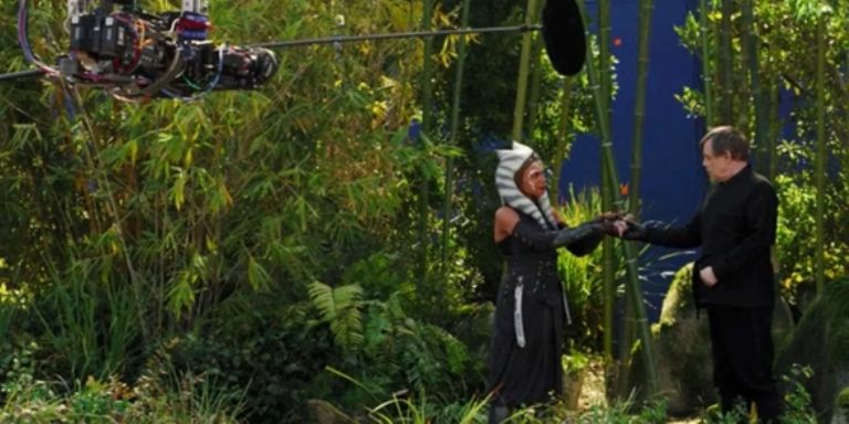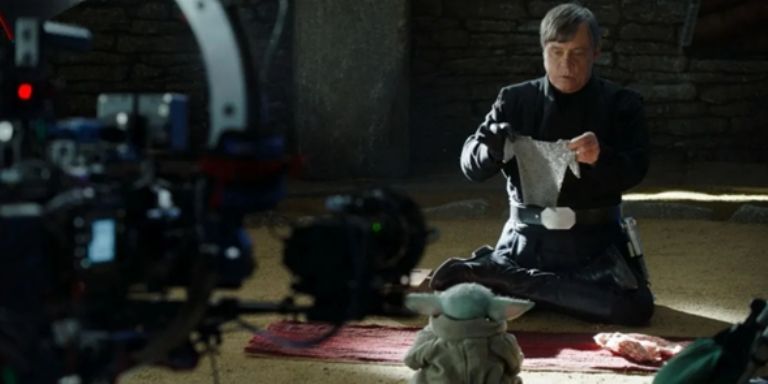 El Libro de Boba Fett muestra cómo Grogu fue entrenado en los caminos Jedi por Luke. El entrenamiento incluía profundos discursos sobre la Fuerza, carreras de obstáculos para afinar la destreza física de los Jedi y mover objetos con la mente. Las nuevas imágenes BTS, compartidas por ScreenRant, muestran a Hamill en el set, interactuando con el Grogu animatrónico antes de que el equipo de efectos digitales des-envejeciera al Maestro Jedi en la post-producción. En las fotos también se ve a Hamill de pie junto al doble de Luke Skywalker, Graham Hamilton, que sirvió como doble de cuerpo para Hamill durante la producción.