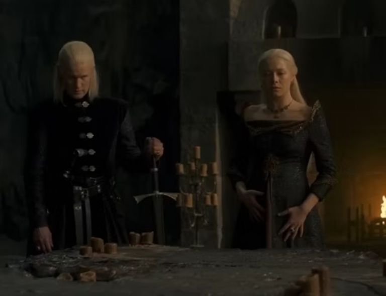 El episodio 9 vio el encarcelamiento de la princesa Rhaenys Targaryen (Eve Best), docenas de sirvientes, y el asesinato de Lord Beesbury (Bill Paterson) en el Pequeño Consejo por el fuera de control Ser Criston Cole (Fabian Frankel). Los Verdes, como se conoce al lado de las Hightowers, han instalado efectivamente al claramente no apto Aegon como rey, pero su tía, Rhaenys, interrumpe su día especial cuando su dragón estalla desde debajo del suelo y lo mira fijamente.